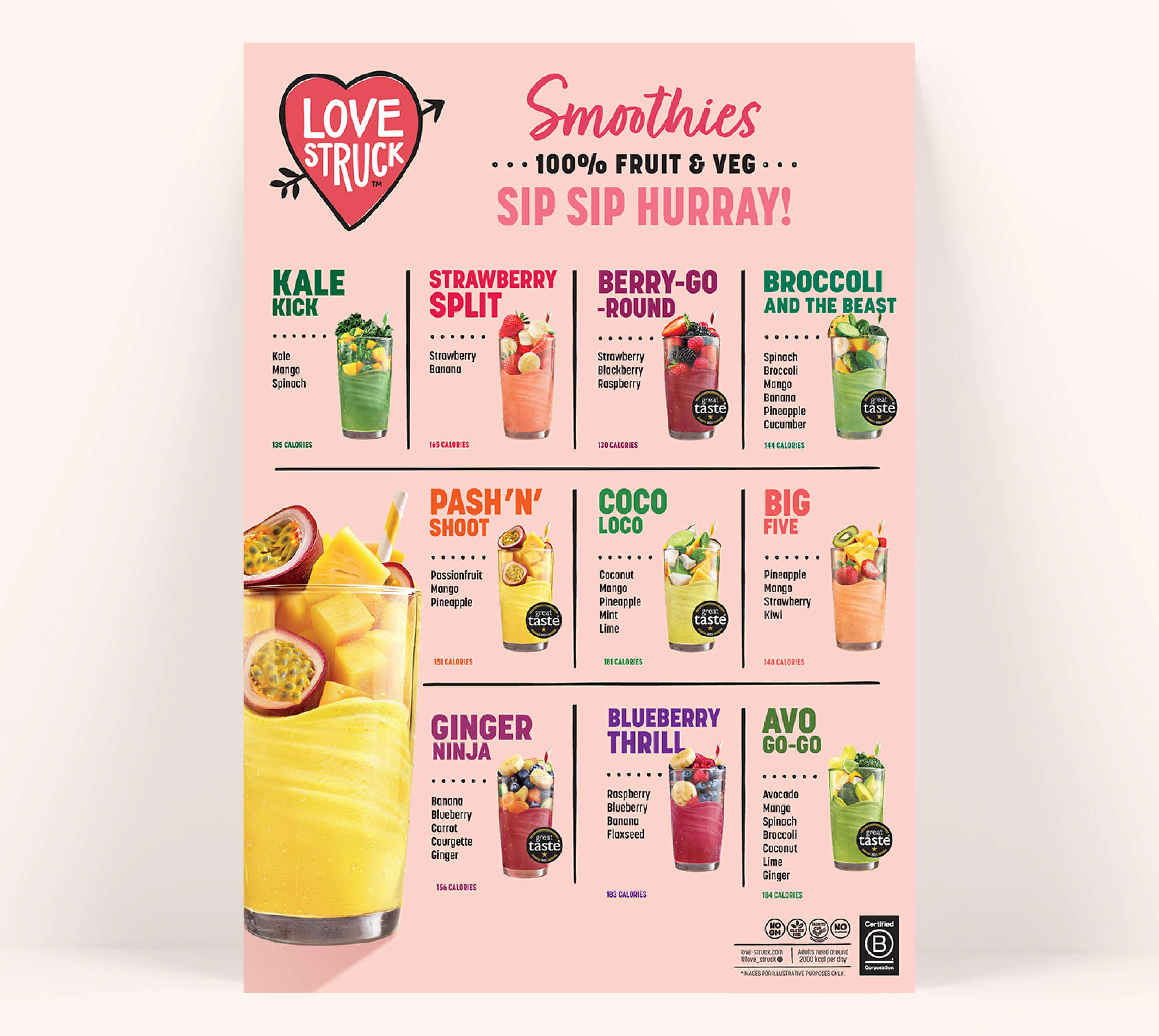 At Love Struck, we bring you smoothies in ready-to-blend frozen packs that you can whizz up ‘fresh’ in an instant. Pre-chopped, pre-mixed and ready when you are. Perfect results every time!
